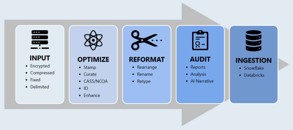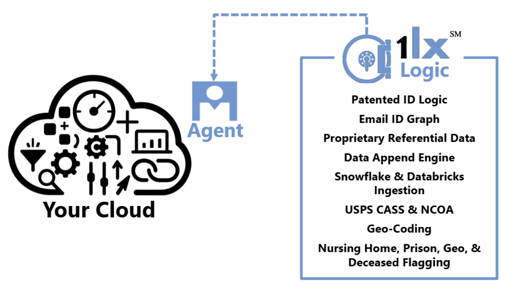 The 1lx agent allows you to ready your data without the need to send PII to third parties. It’s logic readies customer data for CX, CDPs, data warehouses, AI, and anonymous 3rd party enrichment.